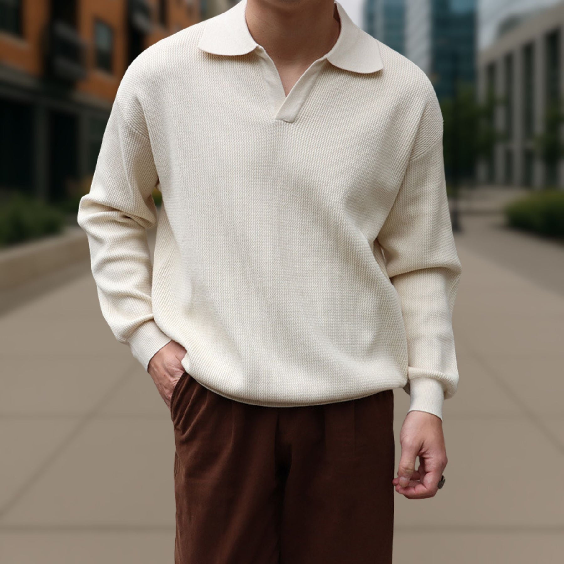 Long Sleeve Knitted Ivory Polo