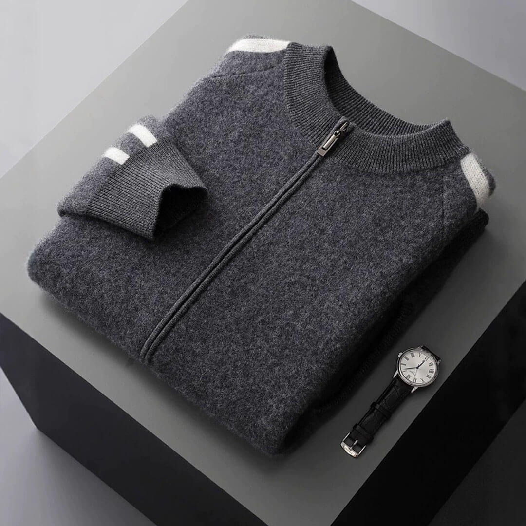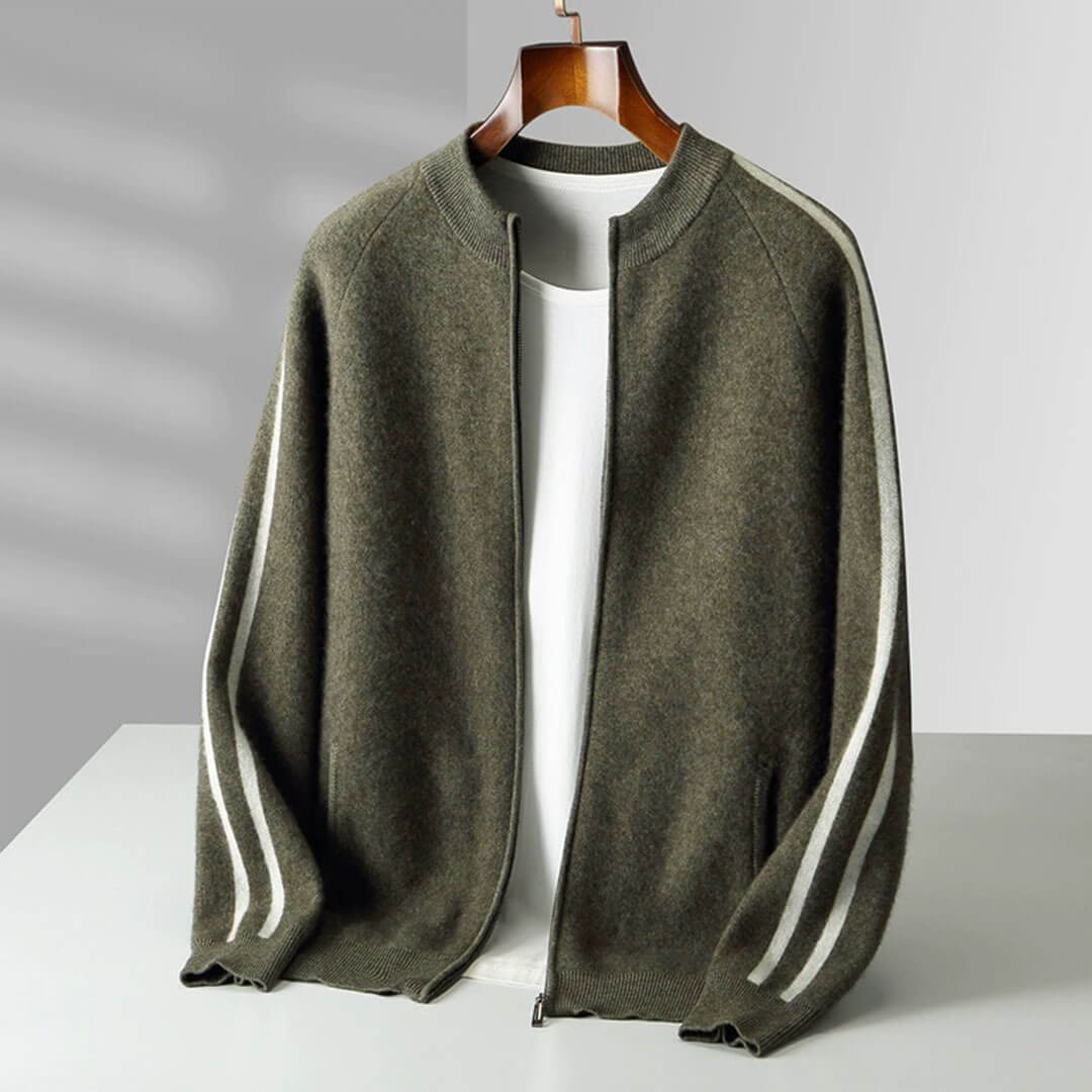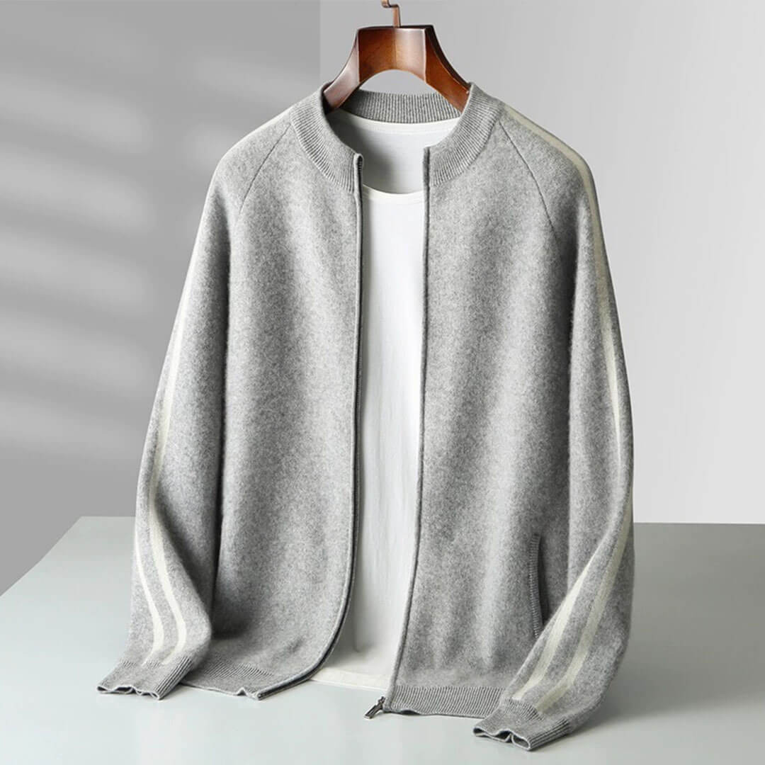 Varenna Cashmere Zip Cardigan offers premium cashmere comfort with a modern zip front, delivering softness, breathability, and lightweight warmth. Striped sleeves add a dynamic accent, while ribbed finishes ensure a clean fit. Tailored for versatility, it transitions effortlessly between casual and refined looks.
