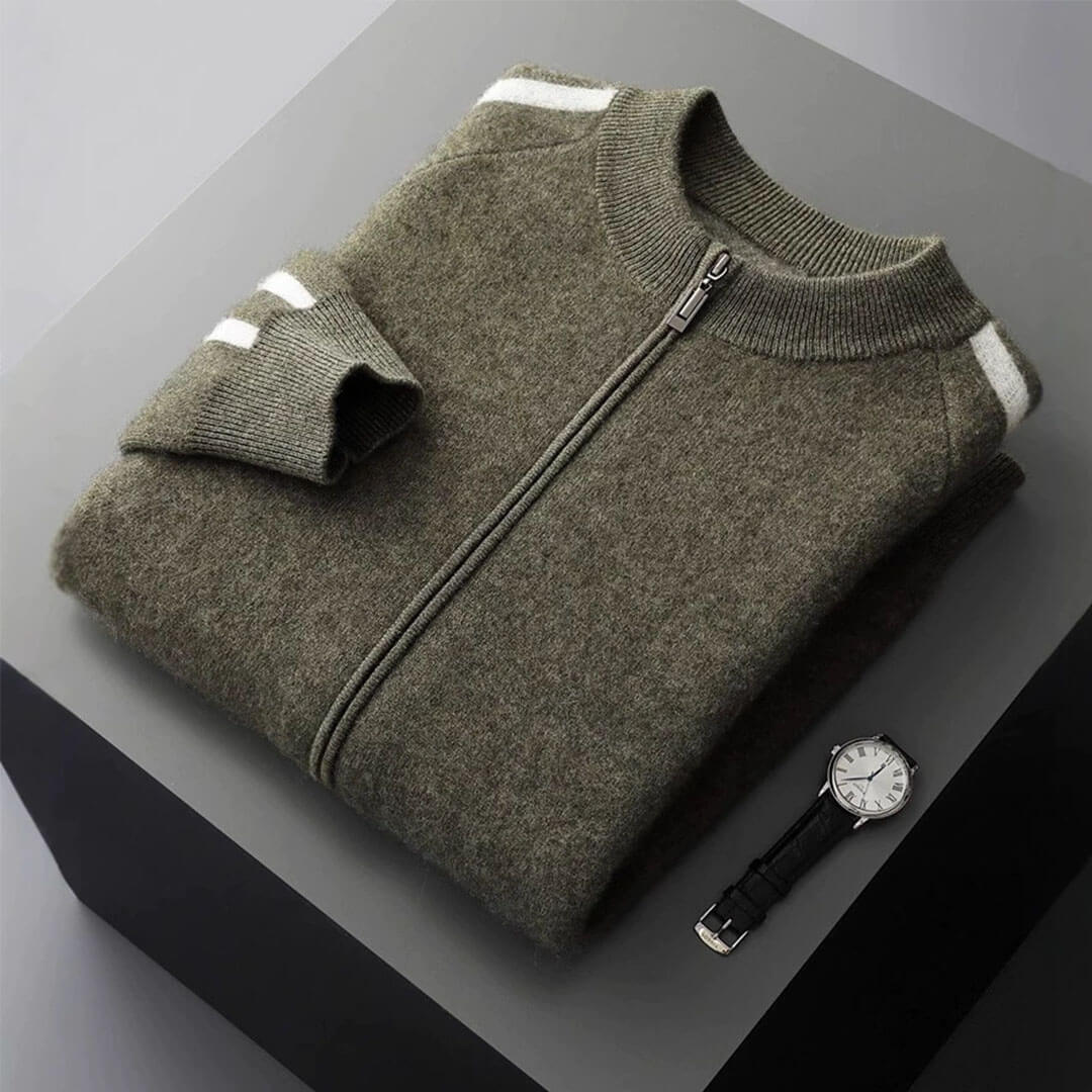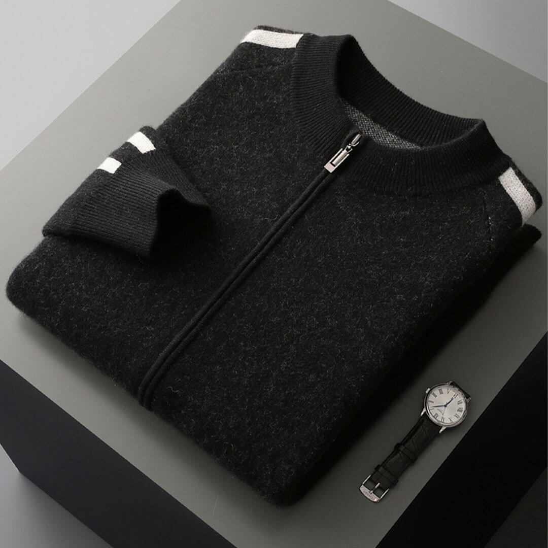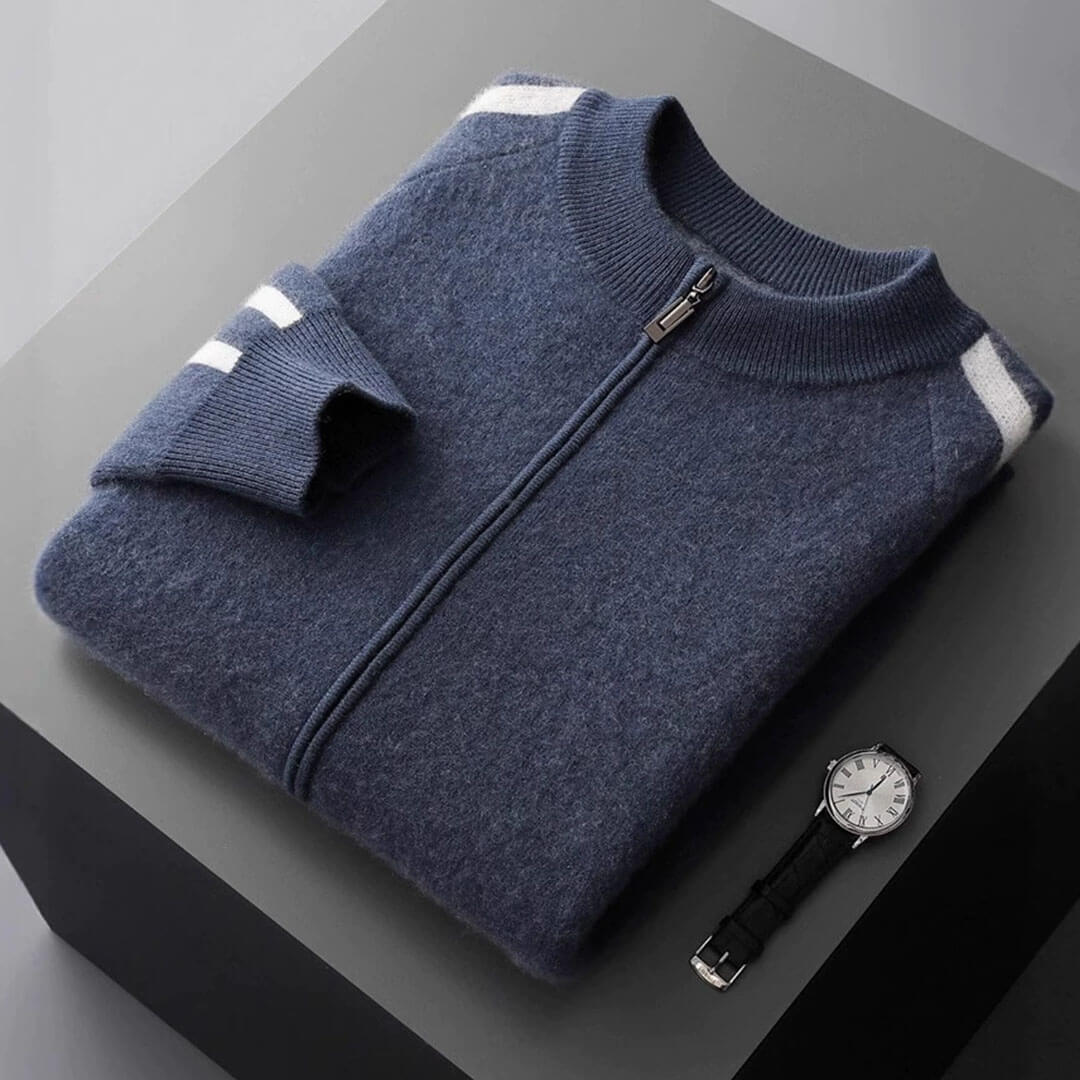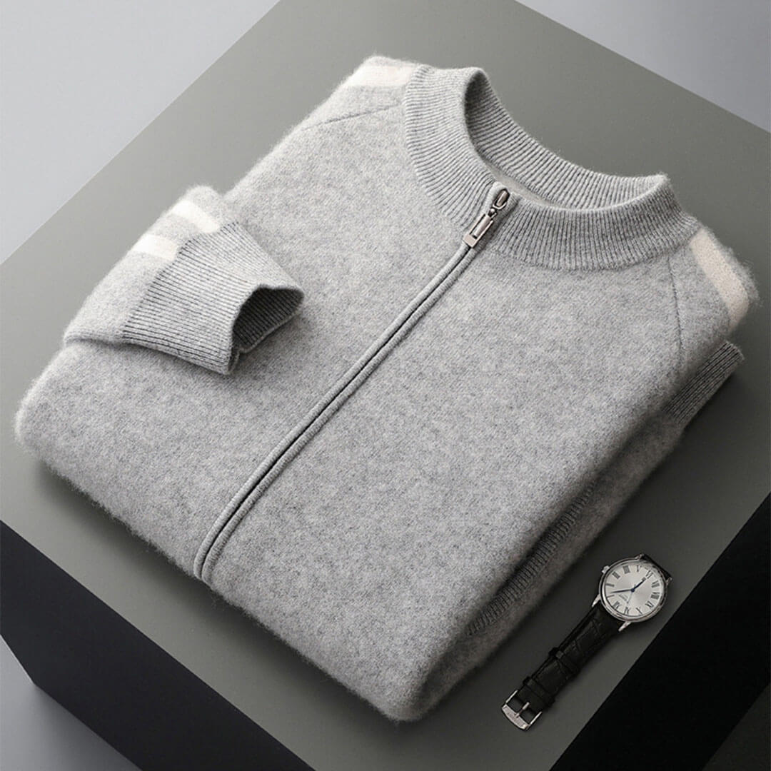 Varenna Cashmere Zip Cardigan offers premium cashmere comfort with a modern zip front, delivering softness, breathability, and lightweight warmth. Striped sleeves add a dynamic accent, while ribbed finishes ensure a clean fit. Tailored for versatility, it transitions effortlessly between casual and refined looks.